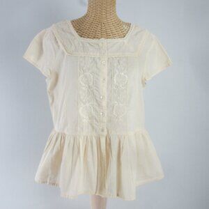 April Cornell Womens S Yellow Cap Sleeve Floral Embroidered Lace Boho Cotton Top