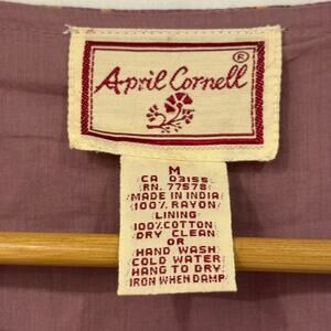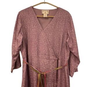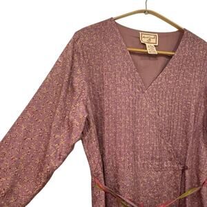 April Cornell Wrap Dress Size Medium Midi Long Sleeve Box Pleat Ribbon Tie