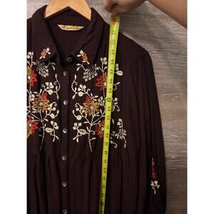 April Cornell tunic blouse Large embroidery brown fall Cottagecore boho Vintage