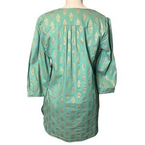 April Cornell Tunic Blouse Small Sea Moss Green Gold Metallic Resort