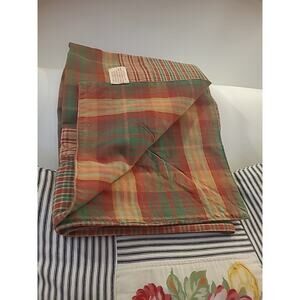 The April Cornell Green, Dark Red, and Taupe Plaid Rectangular Tablecloth is a stylish addition to any home dining table. Made by the reputable brand April Cornell, this tablecloth features a classic plaid design in green, dark red, and taupe colors, adding a touch of rustic charm to your dining experience. Easy to care for with machine wash cold instructions, this tablecloth is both practical and beautiful, perfect for everyday use or special occasions. 68x48. These colors remind me of Harvest Fall Season colors with deep reds, greens, and tapes.