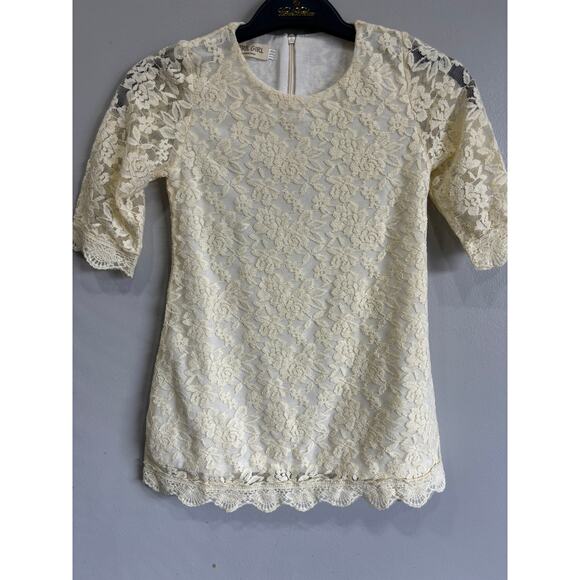 April Girl Cream Lace Special Occasion Dress Girls Size 130 (6) Lined