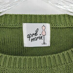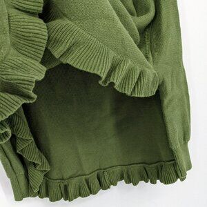 April Marin Poncho Sweater One Size Grassy Green Ruffle Trim Cotton Open Side