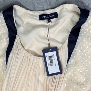 April, May Tana Cream & Navy Blue Pleated Mini Dress