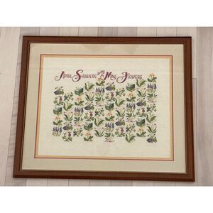 April Showers Bring May Flowers Cross Stitch Embroidered Handmade Artwork Framed