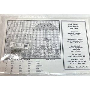 "April Showers" Knob Knocker Cross Stitch Pattern features a charming design by The Sweetheart Tree. This delightful pattern includes beautiful charms to enhance your stitching project. Perfect for cross-stitch enthusiasts looking for a unique project.