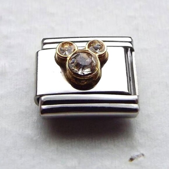 New never used 9mm stainless steel Italian charm with April birthstone mouse ears on it. Fits all standard 9mm Italian charm bracelets,thanks