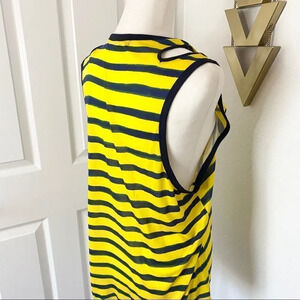 April May Yellow and Blue Striped Shoulder Cut Out Tank Top