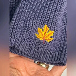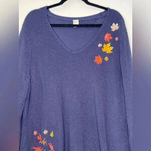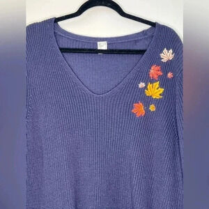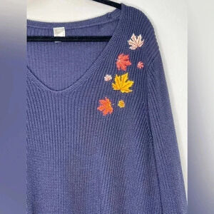 Artsy Leaves knit Sweater, V-Neck long sleeves blue color, great condition