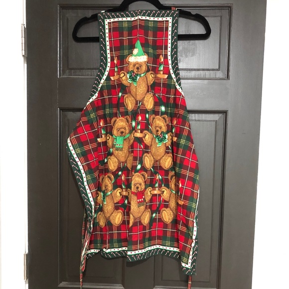 Cute red and green plaid with teddy bear print. Great for Christmas baking on a cold winter night!