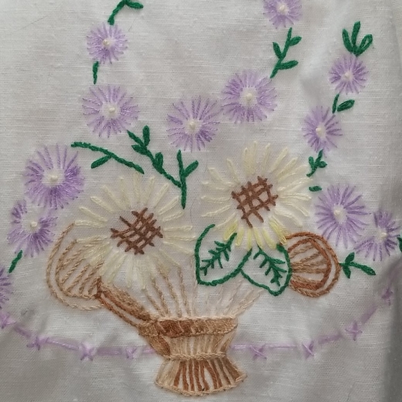 Vintage, hand embroidery, 22 L, waist 20" - 64" ties in back. Little spot in last photo, no odor