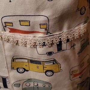 Campers Apron vintage campers, vans, etc. multi colored. M-L Lace trimmed pockets. Adjust around neck for fit by knotting! Handmade, Handwash Cold