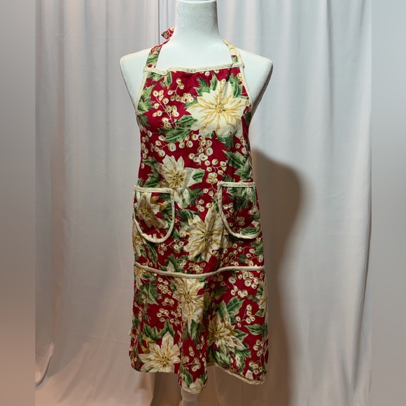 Kitchen apron that ties in back. One size with multiple pockets and flower design. In great condition! Unsure of brand.