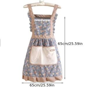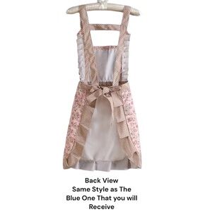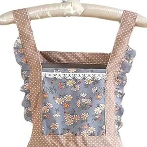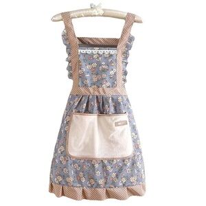 Apron Bib Sweet Vintage Retro Vibe Pockets Waist Tie Floral Polka Dot Blue OS