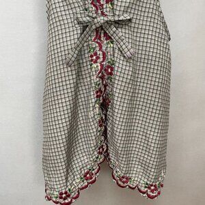Apron Floral Embroidery Plaid Pockets Tie Button Back Scalloped Edge Cottagecore
