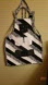 Why do we forget to wear an apron, especially when so cute! Two - sided apron; one side is a beautiful multi-colored black and white jeans in a striped quilt pattern with accent b/w damask floral cotton fabric. The reverse side is a damask floral pattern. Only the jean side has pockets to hold your necessities. The quilt apron ties are long, so it is one size fits most.