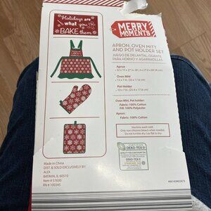 Apron Set Christmas Holiday Baking Oven Mitt Potholder Kitchen Merry Moments
