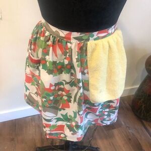 Apron winter Christmas holly leaves red ribbon attached hand towel