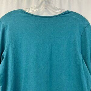 Apropos Womens Blouse Teal Long Sleeve Ruched Scoop Neck Stretch Cotton Solid M