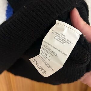 Never worn. No tags. Perfect condition. Soft fuzzy material. Geometric design. Sparkle in the blue portions. Crew neck. No size tags but I wear size small and it fits with a nice oversized look, but nothing too huge.