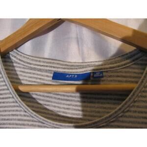 Apt 8 Tunic Tee shirt Assymetric Hem, Grey White Stripe Size XS Machine Wash cool, non chlorine bleach, Tumble dry cool, remove promptly,