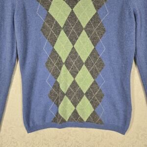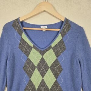 Apt 9 100% Cashmere Argyle Sweater sz M Blue Green Gray V Neck