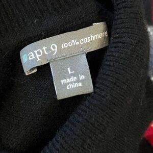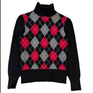 Apt 9 100% Cashmere Turtleneck Sweater Black Red Argyle Womens Large
