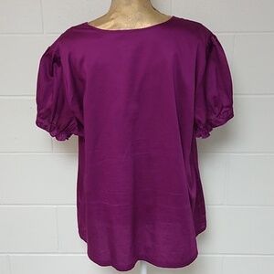 Apt 9 100% soft cotton, sheen berry burgundy lattice & gathering detail, blouse, puff sleeve.