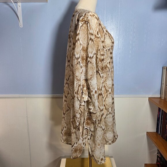 Apt. 9 2X Brown White Snake Skin Semi Sheer Button Up Roll Tab Casual Blouse
