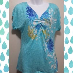 Apt 9 Aqua Floral Embellished V-Neck Blouse