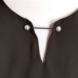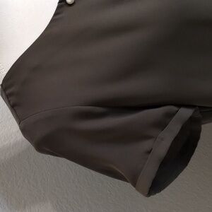 Apt. 9 Army Green Blouse Size Medium Pearl Neck Detail Short Sleeve