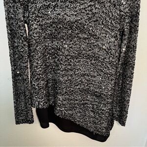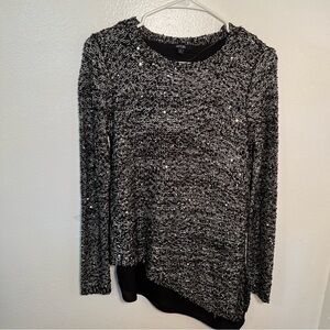 Great condition, minor wear. Apt. 9. Asymmetrical sequin crewneck sweater. black/ gray color. Your style will shine in this women's mock-layer sweater from Apt. 9, featuring shimmering sequin details. The mock-layer design and asymmetrical hem keep your look modern.