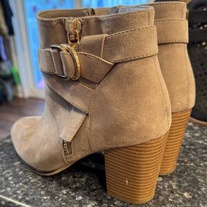 Apt. 9 Beige Suede Ankle Boots with Gold Accent