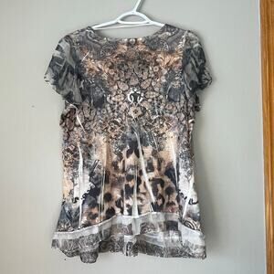 Apt. 9 Black / Brown / Gray V-Neck Short Sleeve Blouse Size 1X