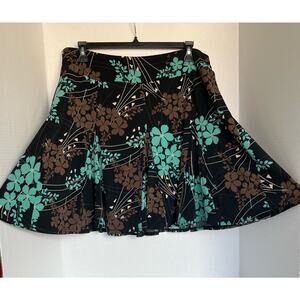 Apt 9 Black Brown Teal Floral A-Line Knee Length Flare Skirt Petite PXL
