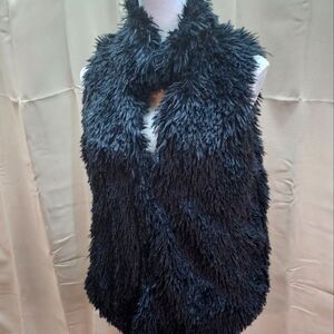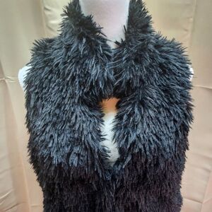 Apt. 9 Black Faux Feather Fur Clasp Front Vest Jacket Fits Small and Medium