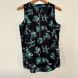 🦋 Apt. 9 Black Green Floral Quarter Zip Sleeveless Blouse Medium
