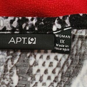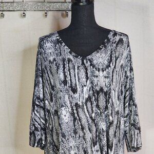 Apt. 9 Black Grey White Rayon Span Snake Print 3/4 Sleeve Scoop Neck Tunic Sz 1X