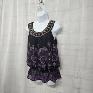 Apt 9 Black Purple Y2K Tank Beaded Boho Fairy Goth Witchy Gypsy S