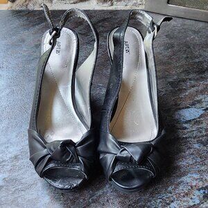 Apt. 9 Black Vegan Leather Wedge Slingbacks Size 7.5