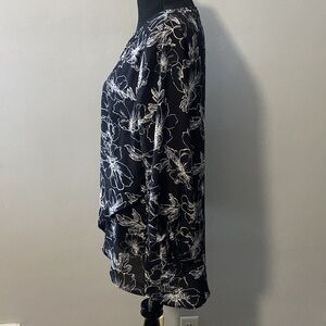 Apt. 9 Black & White Floral Print Blouse. Cross layer faux wrap. 3/4 tie cuff sleeves. Sz L. Very nice condition.