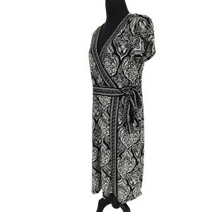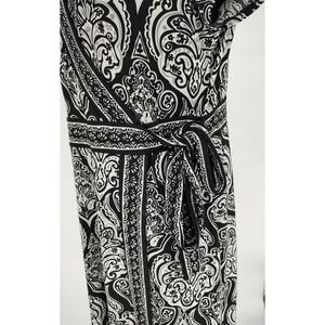 Apt 9 Black White Geometric Faux Wrap Dress Size Large Stretch Side Tie Attached