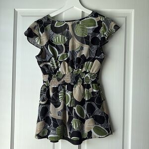 Apt. 9 Black and Green Peplum Blouse Top size medium