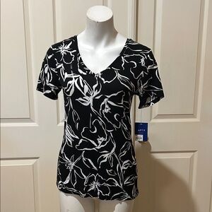 Apt. 9 Black and White Floral Short Sleeve Top. NWT. Small