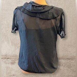 Ruffle front, sheer black with black tank top slip, short sleeve