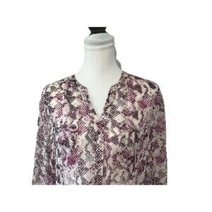 Apt. 9 Blouse Women's Size XL 3/4 Roll Tab Sleeves Snake Print Purple Gray Top