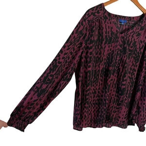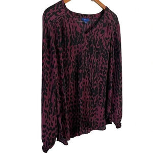Apt. 9 Blouse XL Abstract Spotted Plum Purple Black Fabric Button Accents Thin