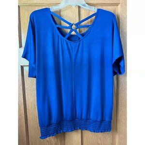 Apartment 9 Blue Blouse, Dolman style elastic waist for a flattering fit and nice back neck design. Size Large