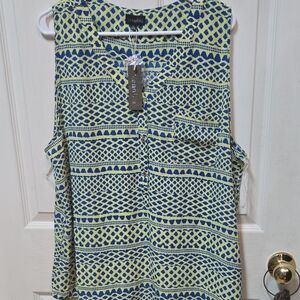 Apt. 9 Blue and Yellow Patterned Sleeveless Blouse