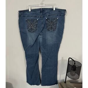 Apt. 9 Bootcut Jeans w/ Bejeweled Pockets in Women's Plus Size 24W. Medium Wash. Jeans have some wear between the legs, but they're not thinning and they still have wear left in them; no other flaws or stains. Please see close-up pictures for condition details.